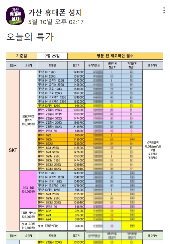 ○ 카카오 채널에 주기적으로 시세표가 올라오고 있음