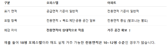 실제로 같은 평수여도 오피스텔이 훨씬 좁게 느껴지는 이유는 분명합니다.