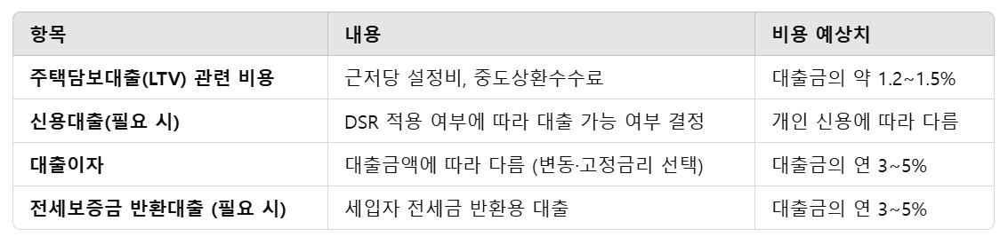 💡 대출 실행 시 발생하는 비용(이자, 근저당 설정비, 수수료 등) 고려 필수