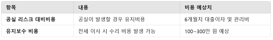 💡 공실 발생 시 대출이자 및 관리비 부담 고려 필요