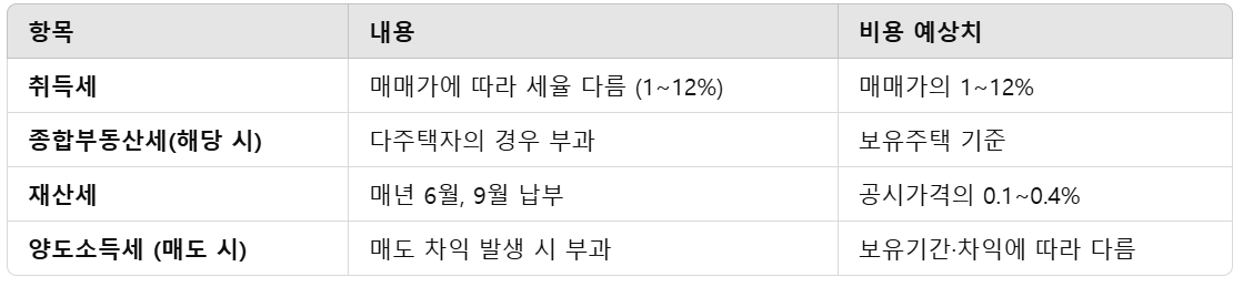 갭투자를 진행할 때는 초기 투자금뿐만 아니라 부대 비용도 고려해야 합니다. 아래는 갭투자 시 반드시 준비해야 할 비용 리스트입니다.