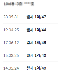○ 재계약 이력이 없으며 짧게는 1년, 길게는 4년 주기로 월세입자가 교체됨