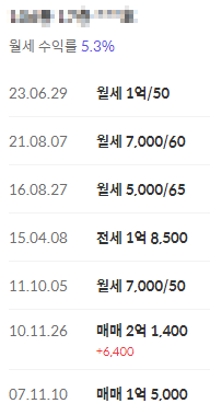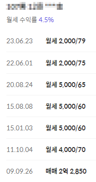 - *월세 수익률 = (월세*12개월)/(최근 매매가-보증금)*100