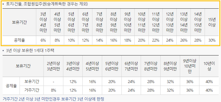 ■ 다주택자 장기보유특별공제액 ☞ 출처 : 국세청