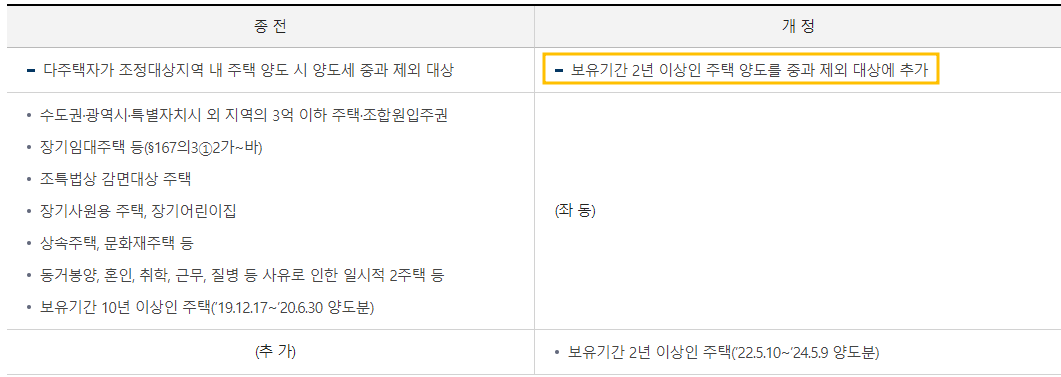 → 적용시기 : ‘22.5.10.부터 ’24.5.9.까지 양도하는 분에 적용