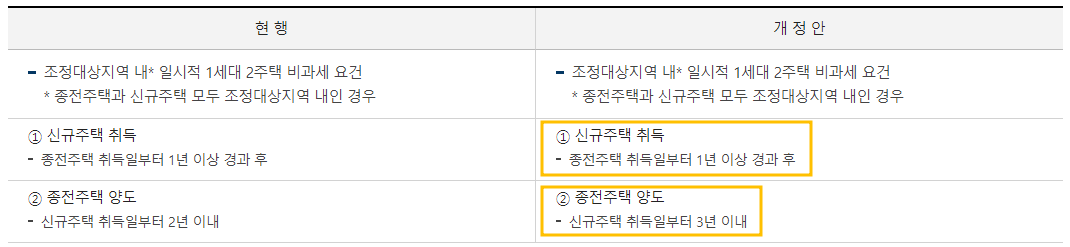 ● 이사 등으로 인한 일시적 1세대 2주택 비과세 요건 완화