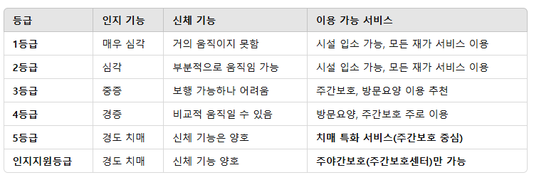 [건강] 치매 노인의 주간보호센터 이용 안내 -> 노인장기요양보험 등급(1~5등급, 인지지원등급) 받