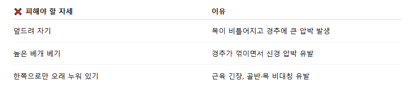 ✅ 목디스크 환자에게 잘못된 수면 자세는?