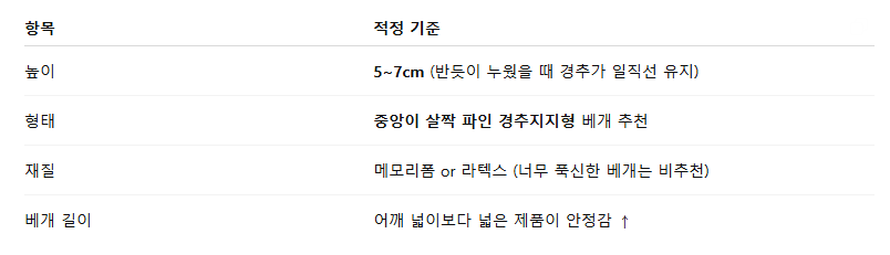 📌 베개는 높이보다 "내 몸에 맞는 정렬 유지 여부"가 중요합니다.