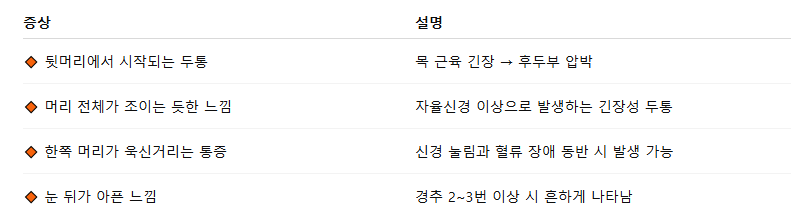 ✅ 목디스크가 유발하는 대표적인 두통 증상