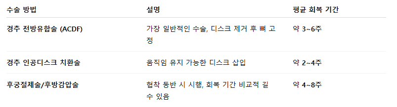 ✅ 목디스크 수술 종류에 따라 회복 기간이 다르다