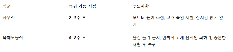 ✅ 직장 복귀 시점 – 사무직 vs 육체노동
