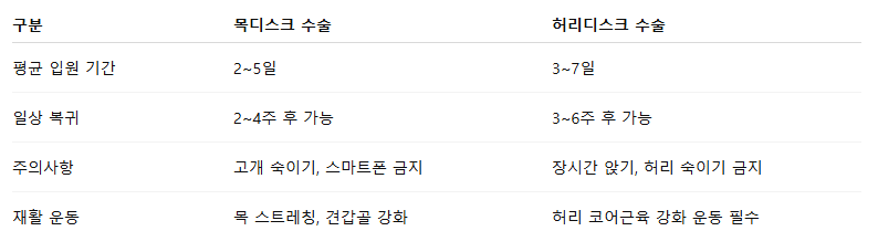 목디스크 수술 vs 허리디스크 수술의
