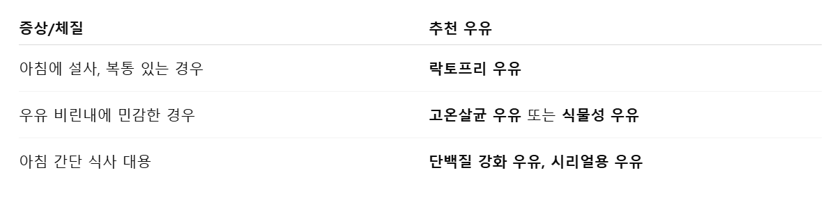 • 특히 유당불내증이 있는 경우, 아침 공복 우유는 비추천