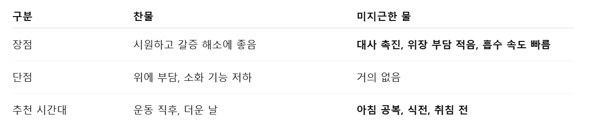 ✅ 찬물보다 ‘미지근한 물’이 좋은 이유