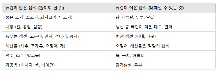 퓨린이 포함된 모든 음식을 완전히 제한할 필요는 없지만, 균형 잡힌 식단을 유지하고 고퓨린 식품 섭취를 줄이는 것이 중요합니다.