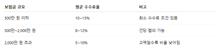 예: 보험금 1,000만 원을 받으면 수수료로 약 80~120만 원 지급