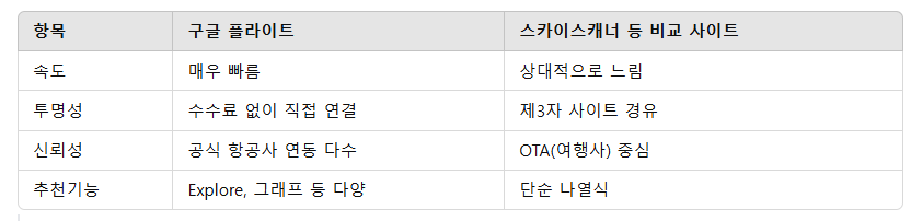 📱 4. 구글 플라이트 vs 일반 가격 비교 사이트, 뭐가 다를까?
