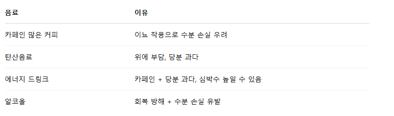 - 땀을 많이 흘리는 여름철이나 고강도 운동 시 수분 손실 보충은 꼭 필요