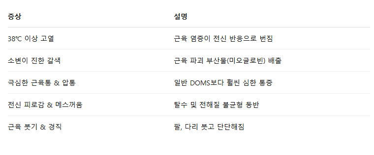 강도 높은 근력운동 직후 고열과 함께 다음 증상이 동반된다면,