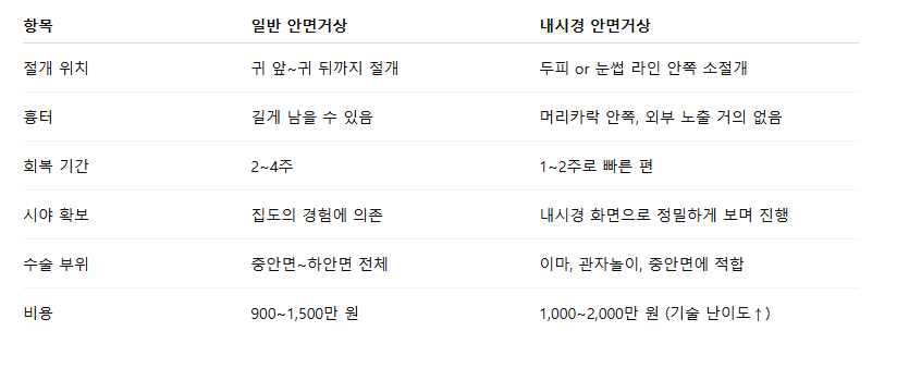 ✅ 일반 안면거상 vs 내시경 안면거상 비교