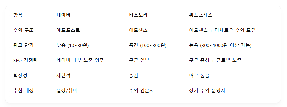 ✅ 1. 네이버 블로그 – 트래픽은 좋지만 수익화는 한계 있음