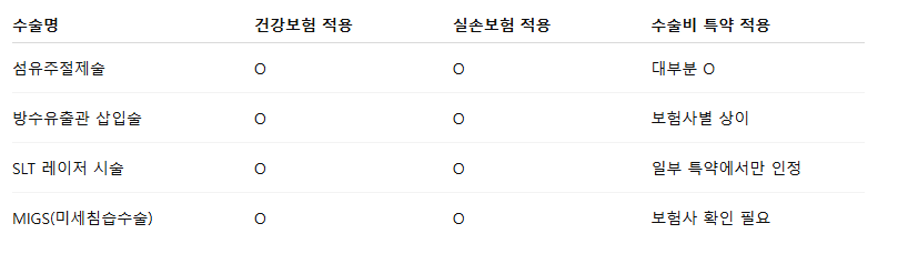 - 수술 전 병원에서 보험 적용 여부를 미리 확인하세요.