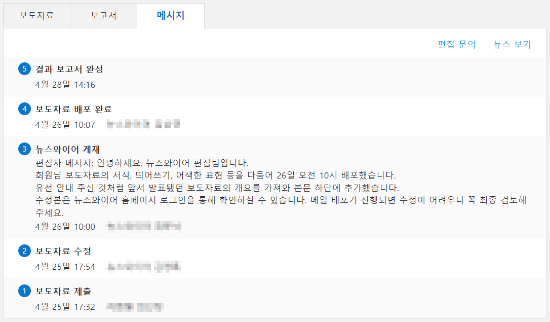 뉴스와이어 사이트에 보도자료와 함께 내 연락처가 공개되고 나서 ‘보도자료 배포서비스’ 업체들로부터 홍보메일이 들어온다. 작은 규모의 대행사나 프리랜서 수준에서 제공하는 서비스인 것 같다. 그러나 아직까지는 뉴스와이어 정도의 인지도, 신뢰도 있는 배포 서비스가 없는 것 같다. 적극 추천한다.