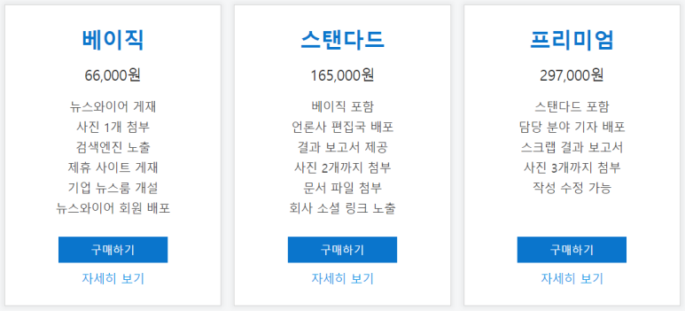 이용방법이 매우 심플해서 기자 상대하는 것과 비교도 되지 않을 만큼 편리하다. 기업 계정을 만들고 법인카드로 서비스 패키지를 구매하고 회사에 대한 기본 정보를 입력한 뒤 바로 보도자료 등록이 가능하다. 미리 준비해 둔 보도자료가 있다면 10분이면 등록이 가능하다. 나의 경우 스탠다드 3회 이용권 패키지를 구매했고 4.4% 할인을 적용받아 473,000원(VAT 포함)을 지불했다.