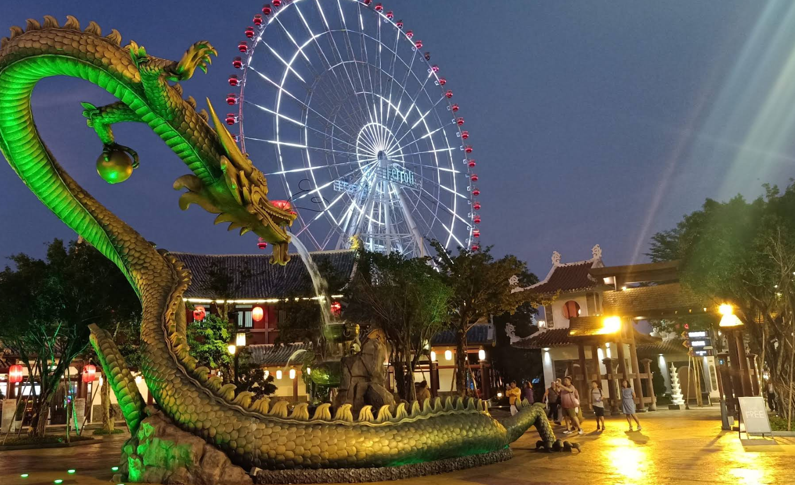 밤 9시가 되면 용이 불과 물을 뿜는 장관을 볼 수 있습니다.