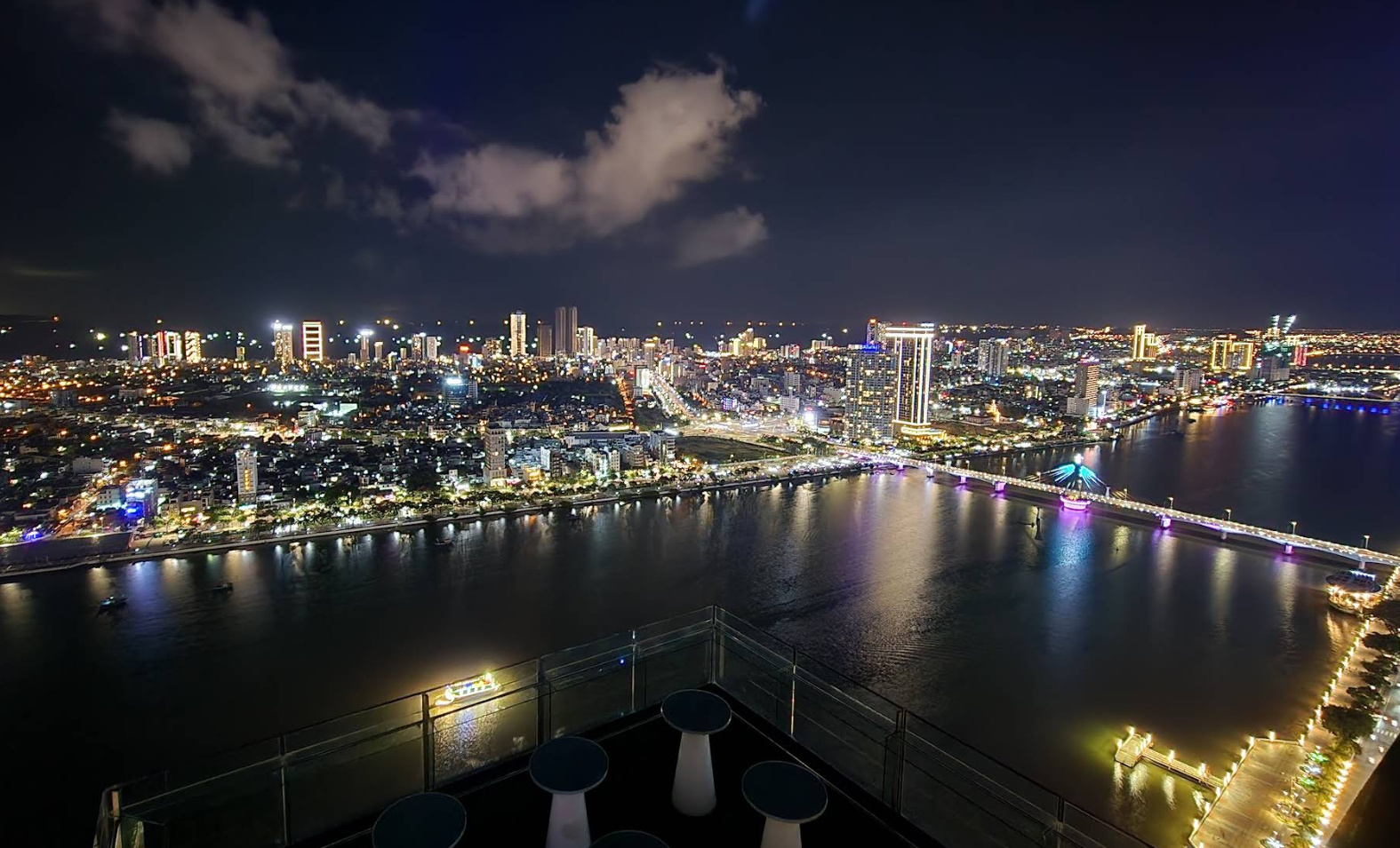 한강과 용다리, 도시 불빛을 한눈에 내려다볼 수 있는 다낭 최고 높이(36층)의 루프탑 바로,