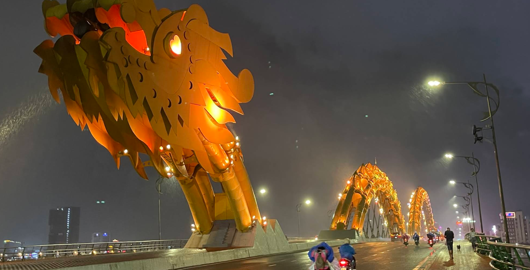 용 모양의 다리가 밤이 되면 화려한 조명으로 물들며,