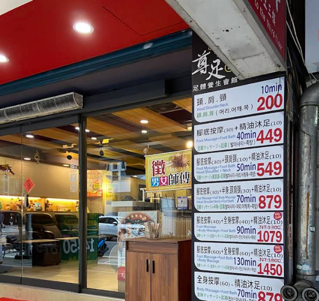 보통 발마사지 30분 300-500NTD / 전신마사지 1시간 600-1,200NTD