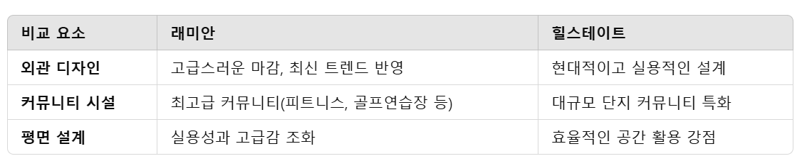 ✅ 브랜드 인지도 측면에서 래미안이 한 단계 높음.