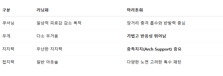 💡 마라톤화는 장거리 지속성과 효율성에 최적화된 구조