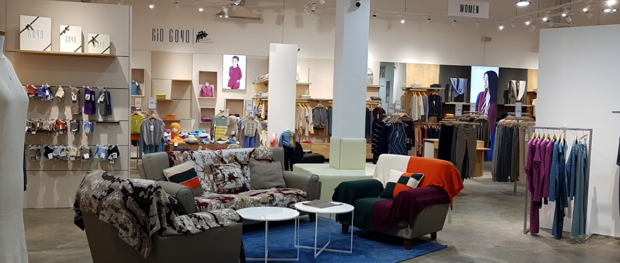 울란바토르 중심가에 위치한 고요 매장은 현대적이고 세련된 외관으로 쉽게 눈에 띄었습니다. 매장에 들어서자마자 따뜻한 분위기와 함께 다양한 캐시미어 제품들이 진열되어 있는 모습이 매우 인상적이었습니다.