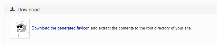 그러면 바로 다운로드 버튼이 생성되어 파비콘을 다운로드하여 이용할 수 있다.