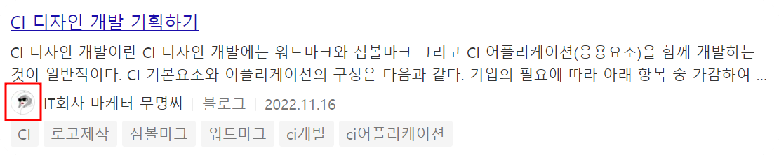 아래 다음의 검색 화면에서 볼 수 있듯이 사이즈가 정말 작다. 따라서 심플한 이미지나 로고를 가지고 만드는 것이 좋다. 아무리 멋진 이미지라도 축소하고 나면 볼품없어진다.