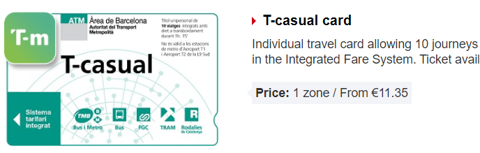 - 가격: 지역(zone)에 따라 다르지만, 바르셀로나 여행자의 대부분은 **Zone 1 (도심권)**만 있으면 충분합니다.
