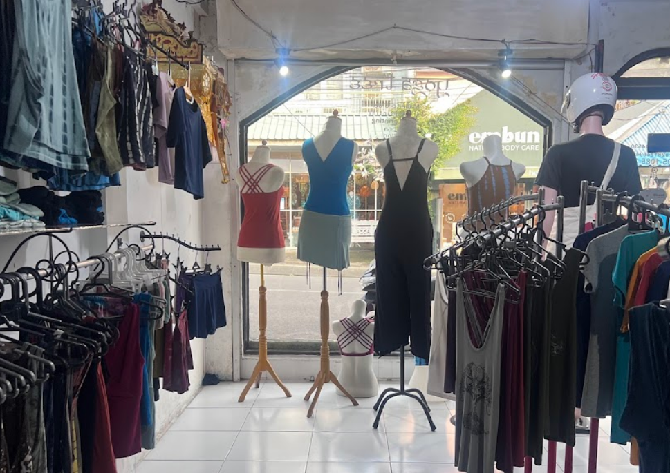 매장은 크지 않지만, 다양한 디자인과 색상의 요가복이 잘 정리되어 있습니다. 특히, 브라탑, 레깅스, 탱크탑 등 다양한 제품이 구비되어 있어 선택의 폭이 넓습니다. 제품들은 발리에서 제작되어 현지의 감성을 느낄 수 있습니다.