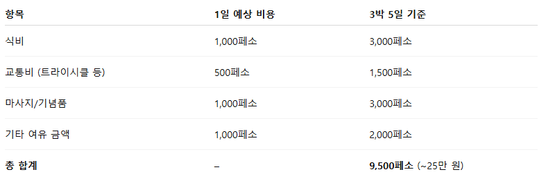 팁: 1페소=약 24~26원 (2025년 기준), 1만 페소 = 약 25만 원