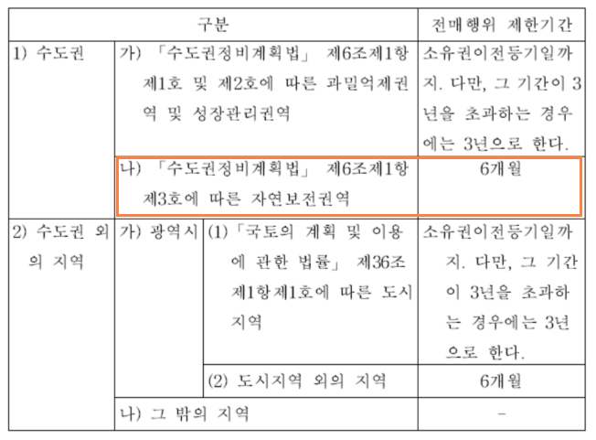 [부동산 가이드] 수도권정비계획법(자연보존권역)에 따른 전매제한 기간