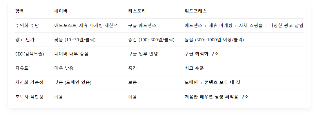 네이버, 티스토리, 워드프레스 중 수익이 가장 좋은 건?