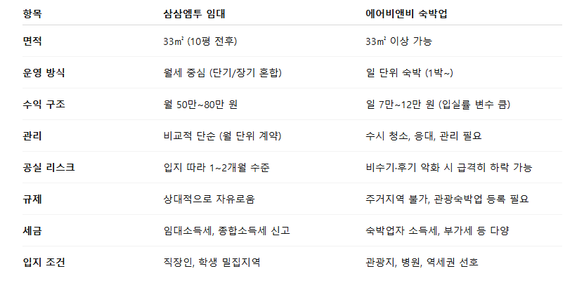 📊 삼삼엠투 vs 에어비앤비 비교표