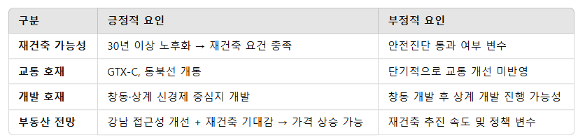 ✅ 재건축이 진행되면 노원구 내 신축 아파트 공급 부족을 해소하면서 가격 상승 가능성이 매우 큼.