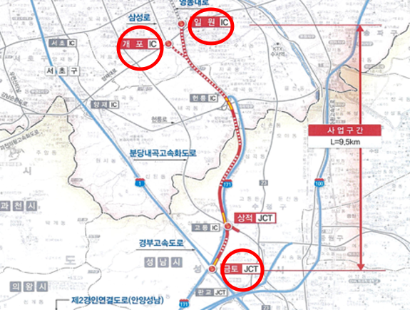 이러한 도로망의 확충은 경부고속도로, 분당내곡간고속화도로, 헌릉로 등의 교통량을 분산시켜 강남 지역의 교통 혼잡을 완화하는 데 기여할 것으로 예상됩니다. 특히, 헌릉로의 정체가 줄어들면 세곡동, 자곡동, 위례신도시 등 인근 지역의 교통 환경도 개선될 것으로 보입니다.