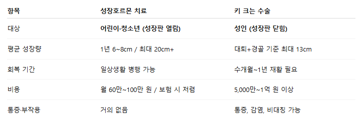 ✔ 성장호르몬 치료 vs 수술 비교 요약