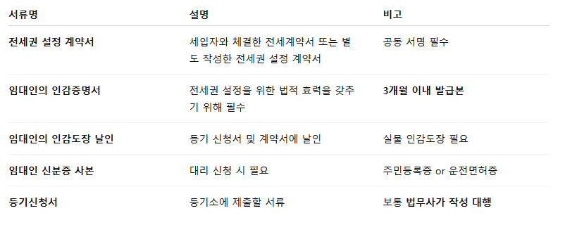 ✅ 전세권 설정 시 임대인이 반드시 제출해야 하는 서류