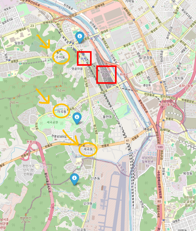 1. 수서차량기지 인근 지역: