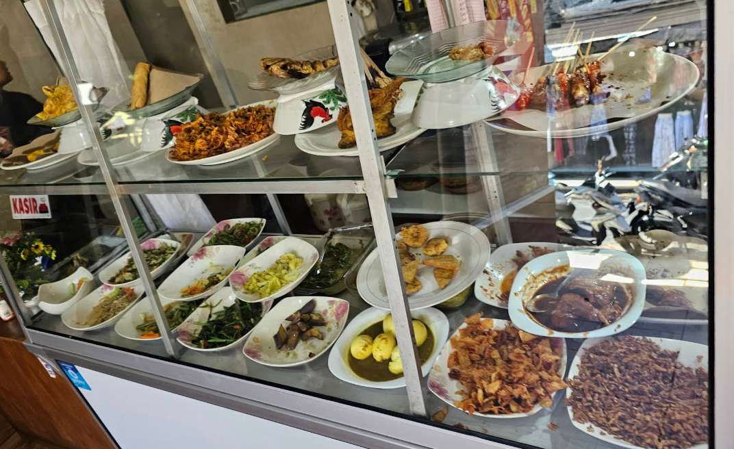 밥 위에 반찬을 골라 담는 방식으로, 다양한 인도네시아 요리를 한 번에 경험할 수 있습니다.